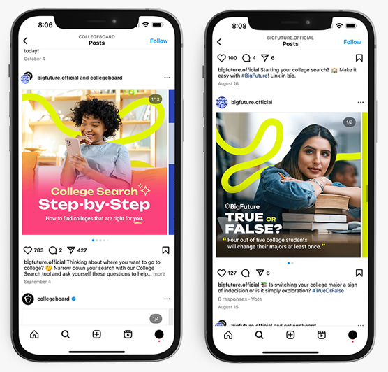 This project is an always-on evolution of College Board’s BigFuture brand look, feel and tone inspired by the brand’s purpose and desired connection to the target audience.