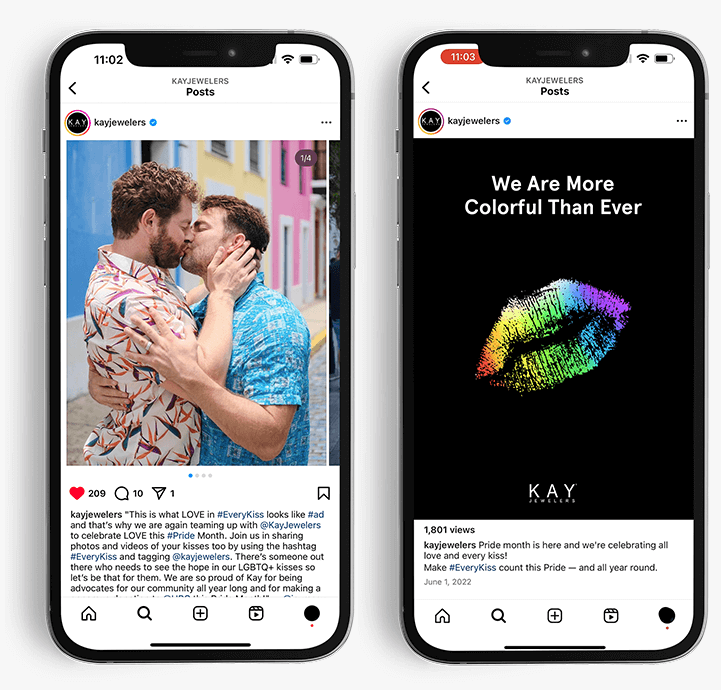 For Pride 2002, KAY Jeweler’s launched the 2nd iteration of their social first campaign encouraging their audience to Celebrate Every Kiss. Not just the love we share within the LGBTQ+ community, but also with our support systems, those who encourage us to live our truths. Together we’re changing our world to be more diverse, accepting and understanding. At KAY, we intend to do it one kiss at a time.