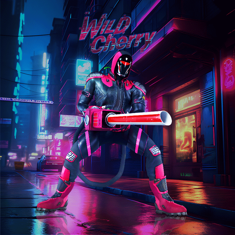 Wild Cherry is a true wildcard. He’s a sarcastic, smack-talker that can’t help but cause chaos. He shoots exploding frozen cherry bombs out of a giant straw cannon that hits opponents right in the sweet spot.