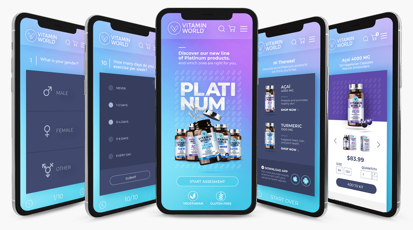 Campaign branding and promotional extensions for Vitamin World’s new Platinum line.