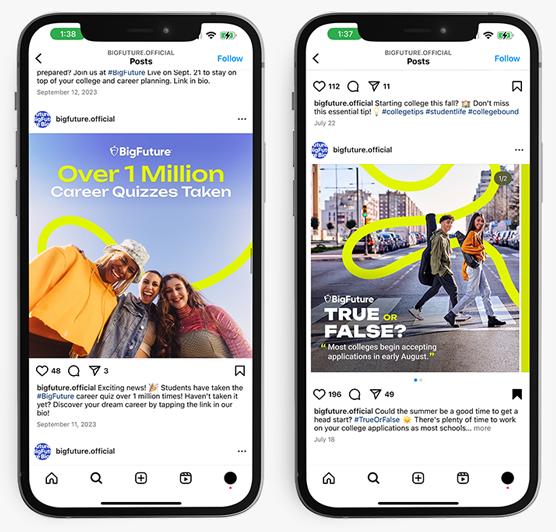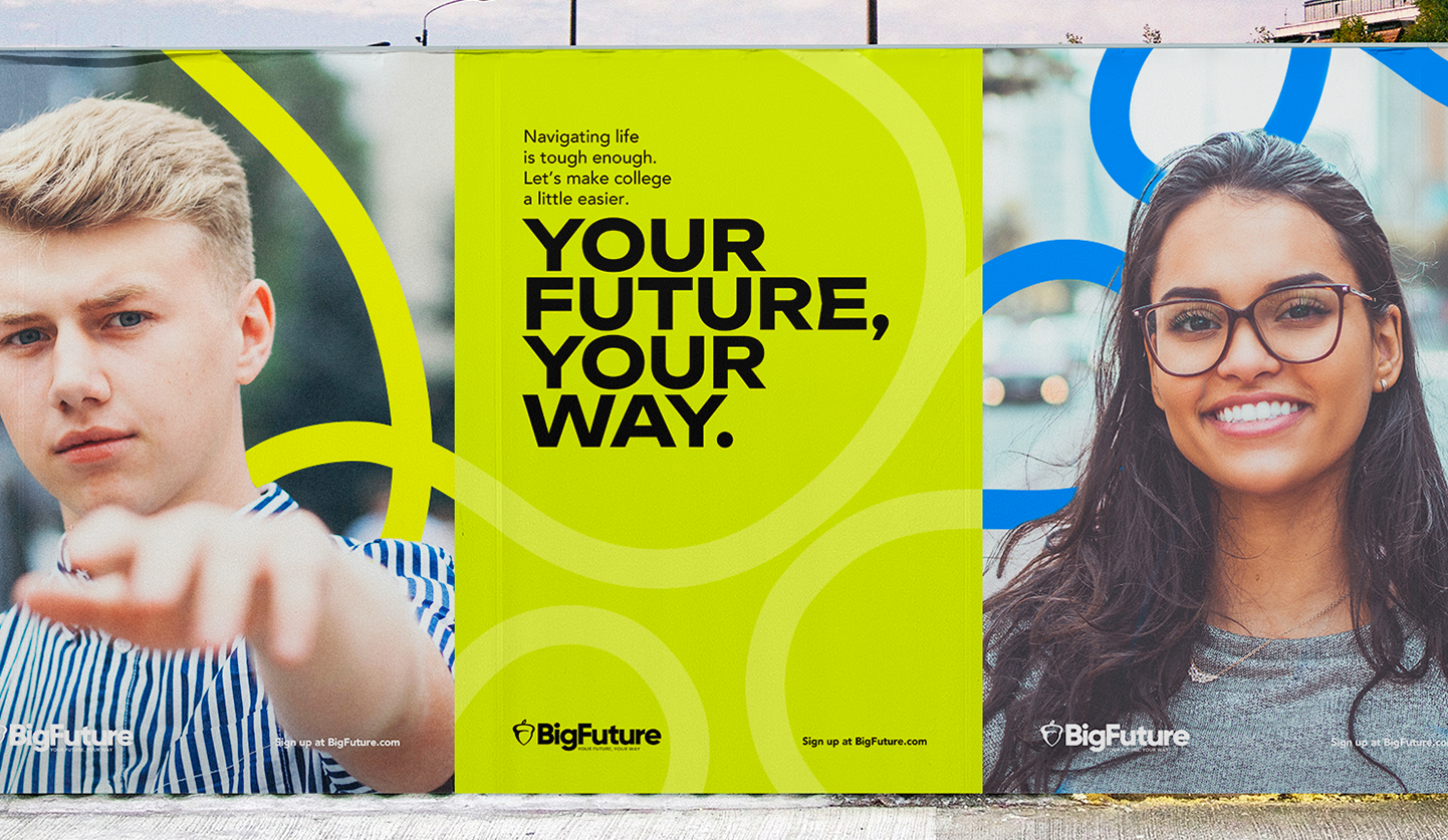This project is an always-on evolution of College Board’s BigFuture brand look, feel and tone inspired by the brand’s purpose and desired connection to the target audience.