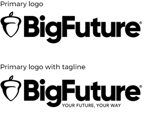 The new visual identity for BigFuture is an updated look and feel that has a modern sensibility, while still feeling inherently human and invites conversation. The typeface chosen communicates trust and respect but also an agility and approachability. The acorn gives a subtle nod to the relationship with CollegeBoard, which is equity we want to tap into, but still allows BigFuture to craft its own unique space.