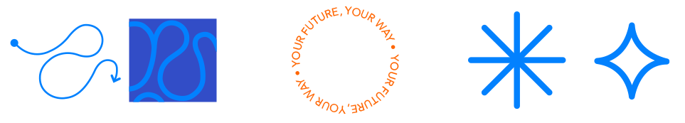 The design elements chosen to build our language focus on a future with unlimited potential using symbols like the circular loop element to imply connected knowledge, the path element to touch on the many paths our students could be taking, and stars to reinforce the idea of dreaming and imagination. Together with other elements like photography and color they create a multi layered design language.