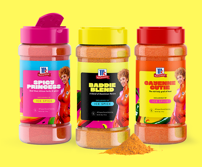 A proposal for a Ice Spice + McCormick brand partnership to promote a new line of seasonsings inspired by the singer's background and love for spicy foods. *Ice Spice's headshots are FPO to give a preview of how she would be styled for the product labels and branded promos.*