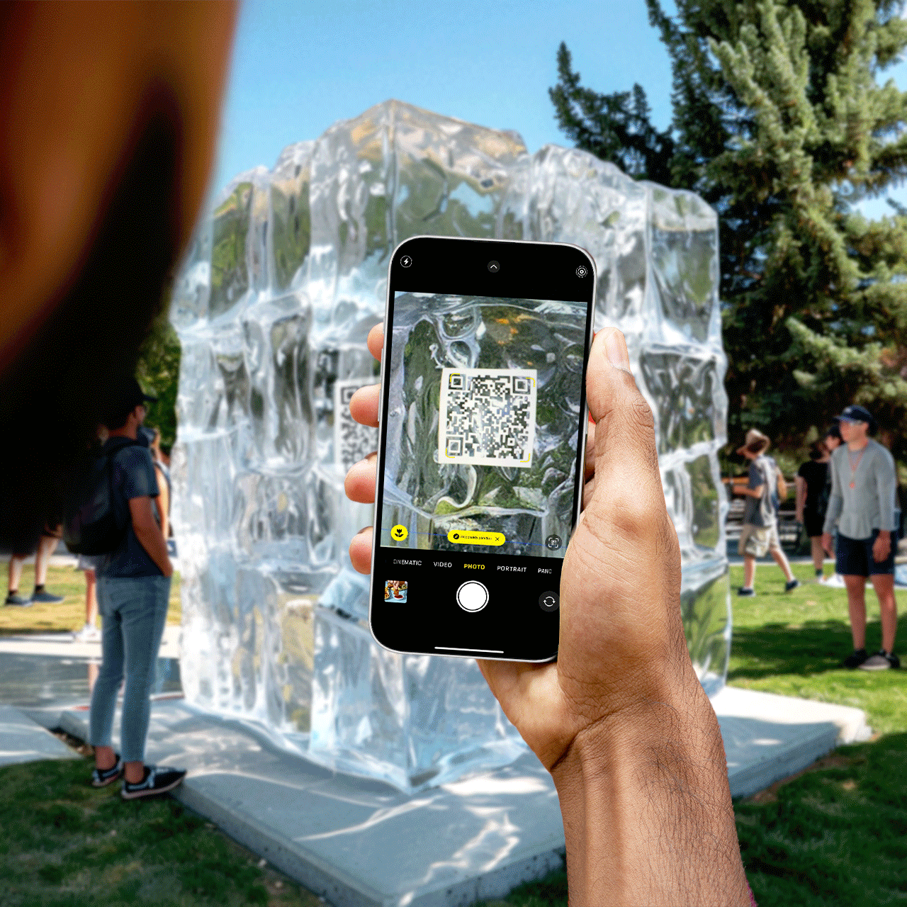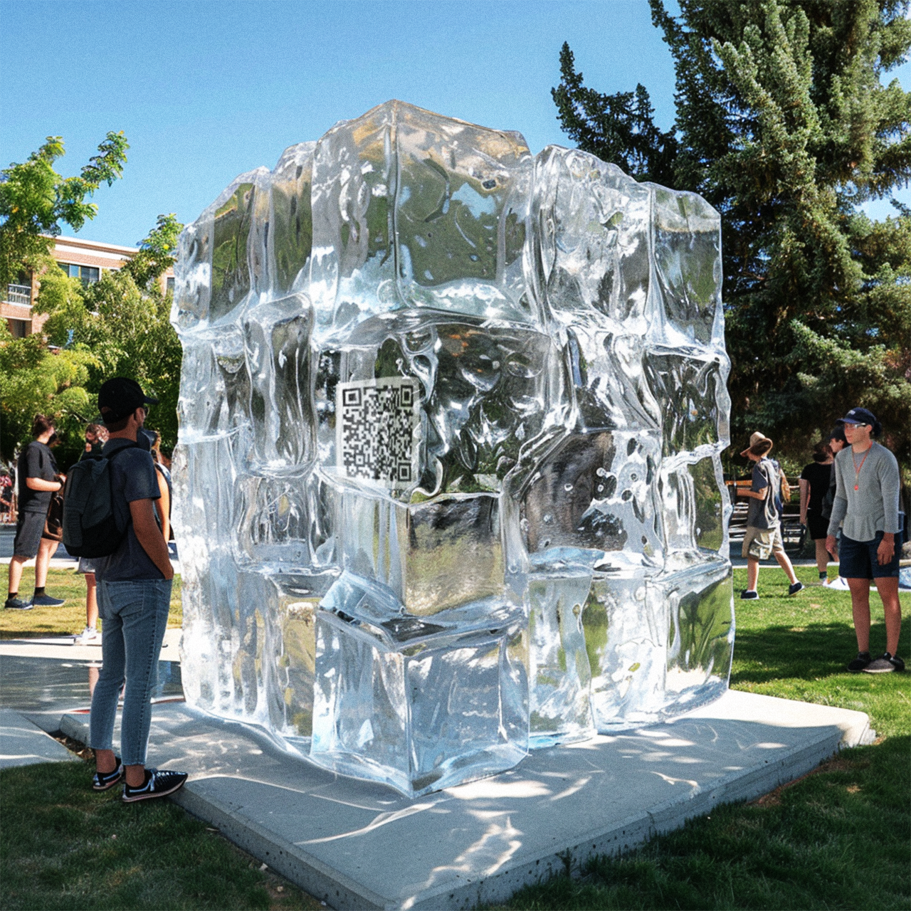 A 10-foot-tall block of ice appears overnight at a college campus that features no branding or signage whatsoever… just a simple QR code, frozen in the middle of a humungous ice cube. Once the ice melted enough to scan the QR code, a WebAR page animates to a screen with ice then transitions to reveal the FREE FCB McDonal's combo offer.